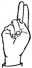 На ћирилици написано БЛАЖА МАРИЋ састоји се из 10 слова [?]. Исписано ћириличном једноручном азбуком за глувонеме:
